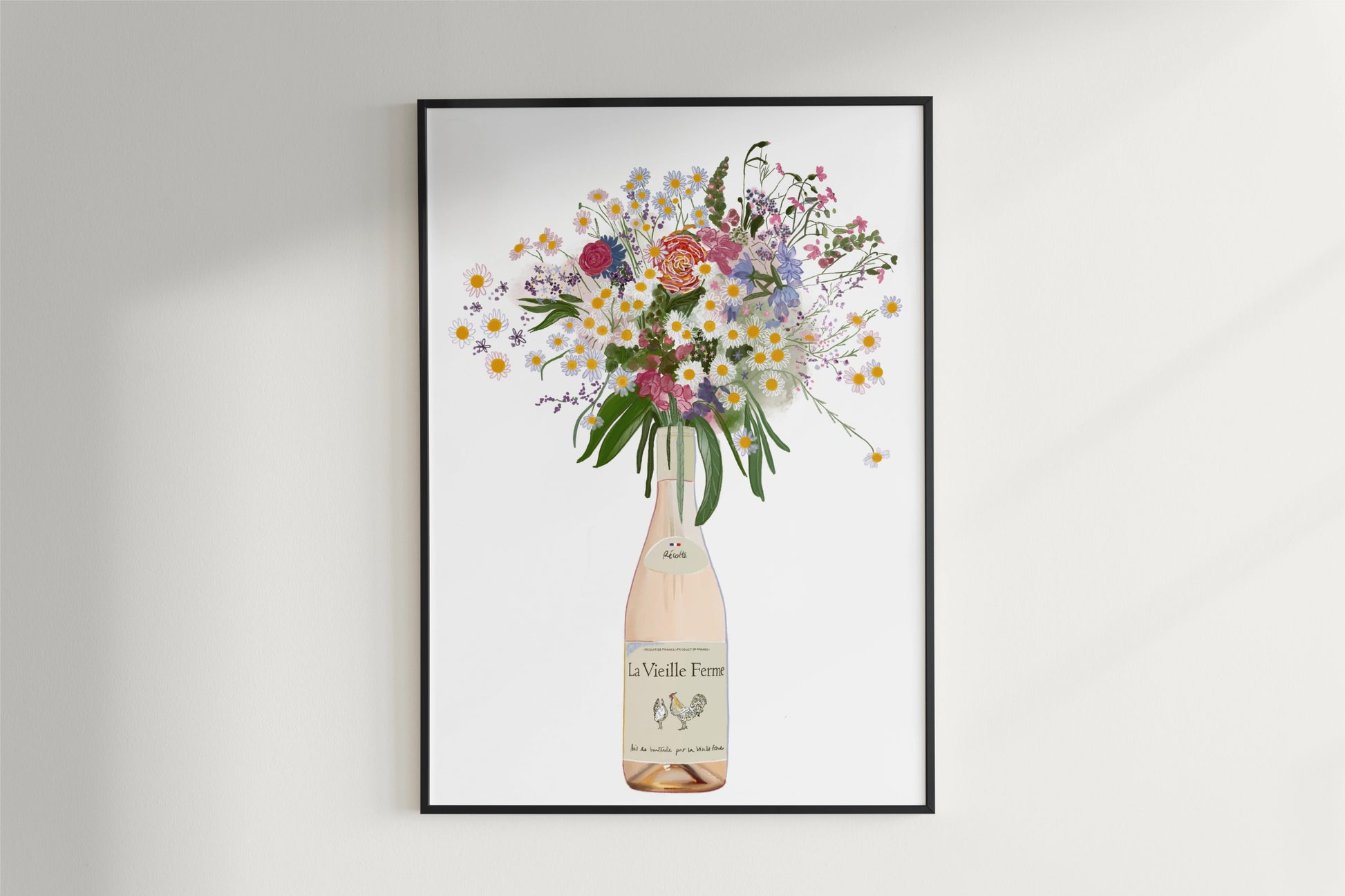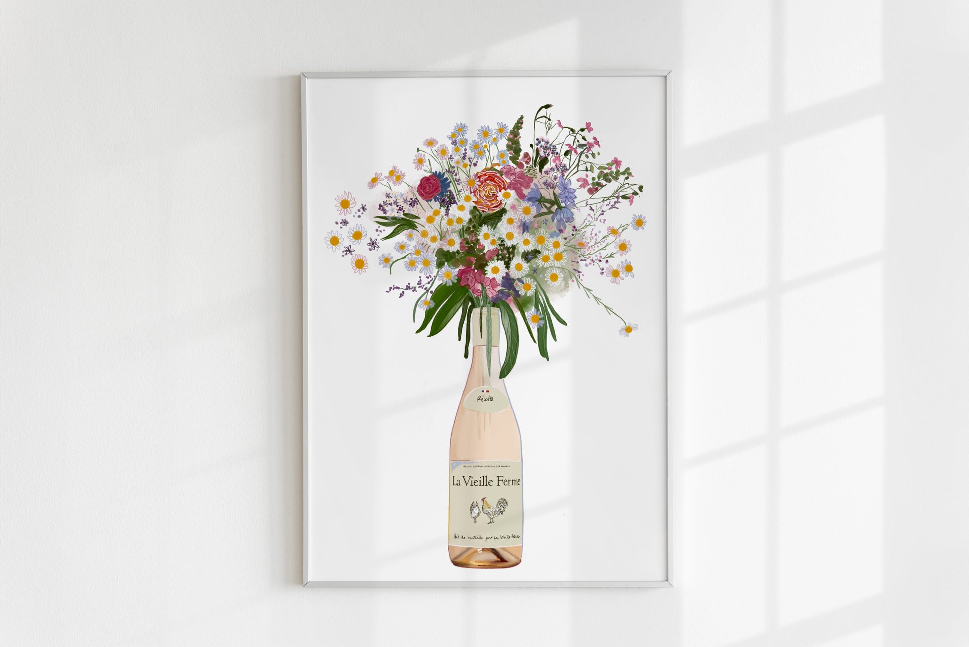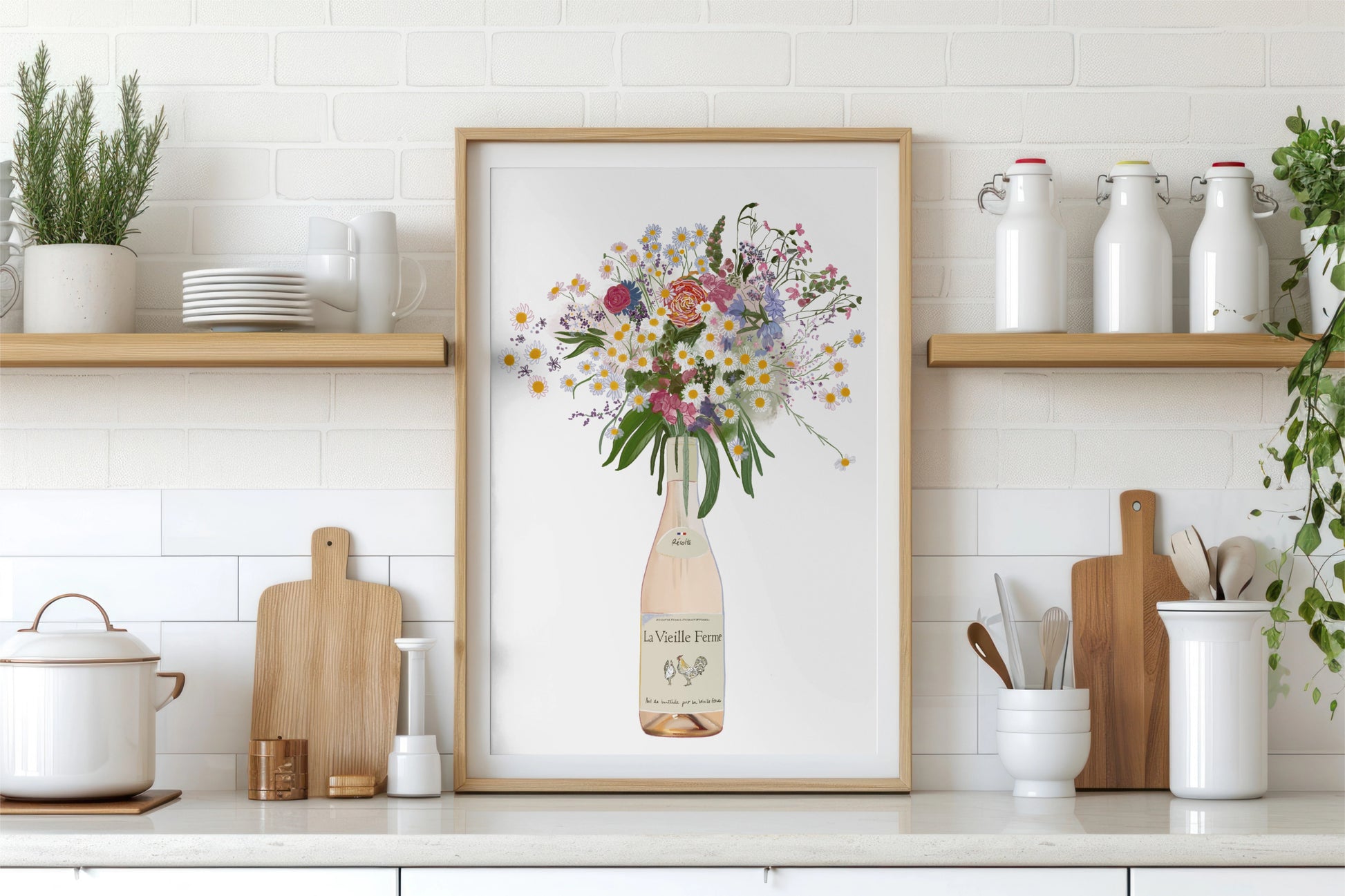 Chicken Wine with Wild Flowers Art print, kitchen poster