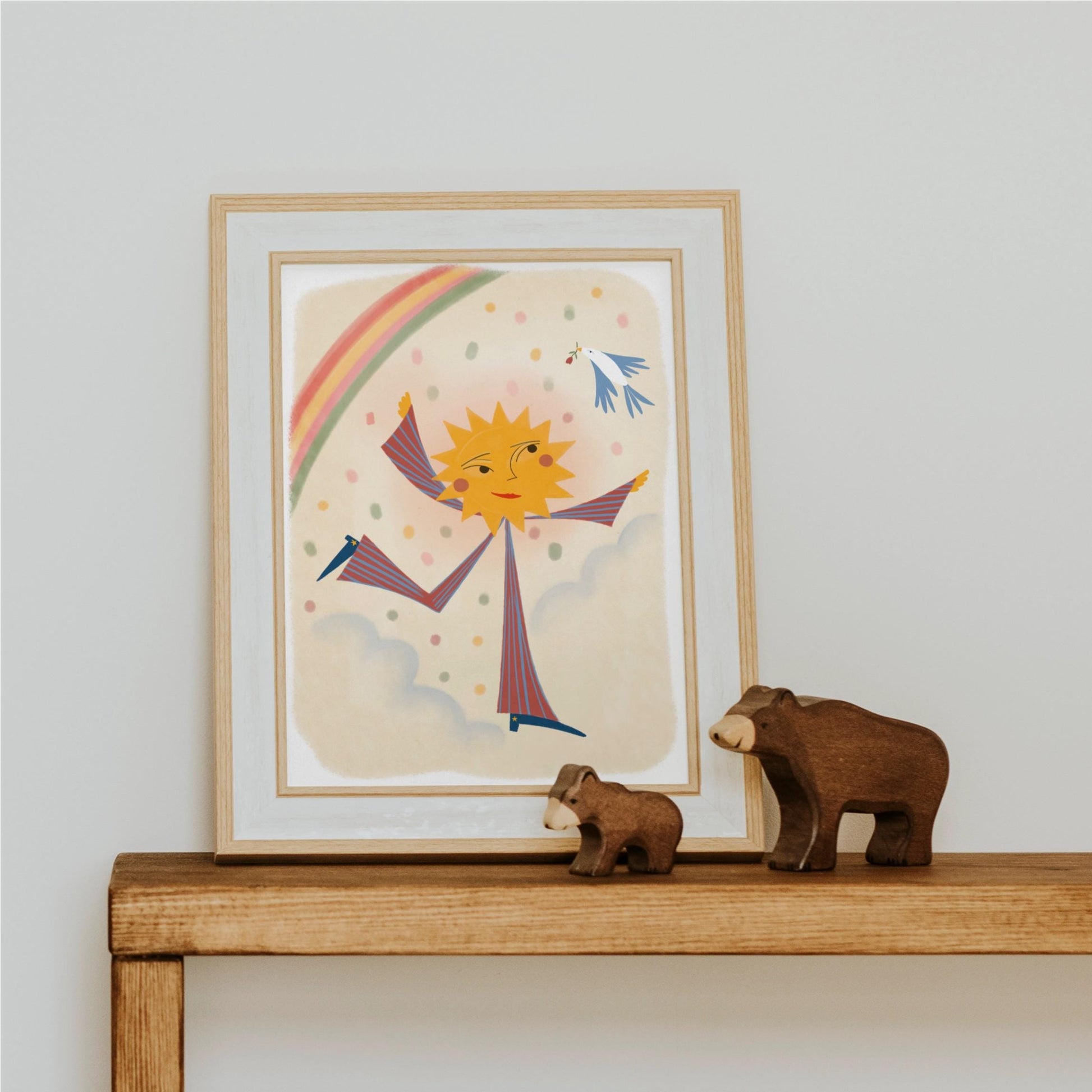 My Colourful Sun Dancer illustration with rainbows and birds has been printed on premium, heavy weight, matte paper using top quality inks to provide a vibrant, colourful and beautiful piece of art to bring a smile to the little one in your life.