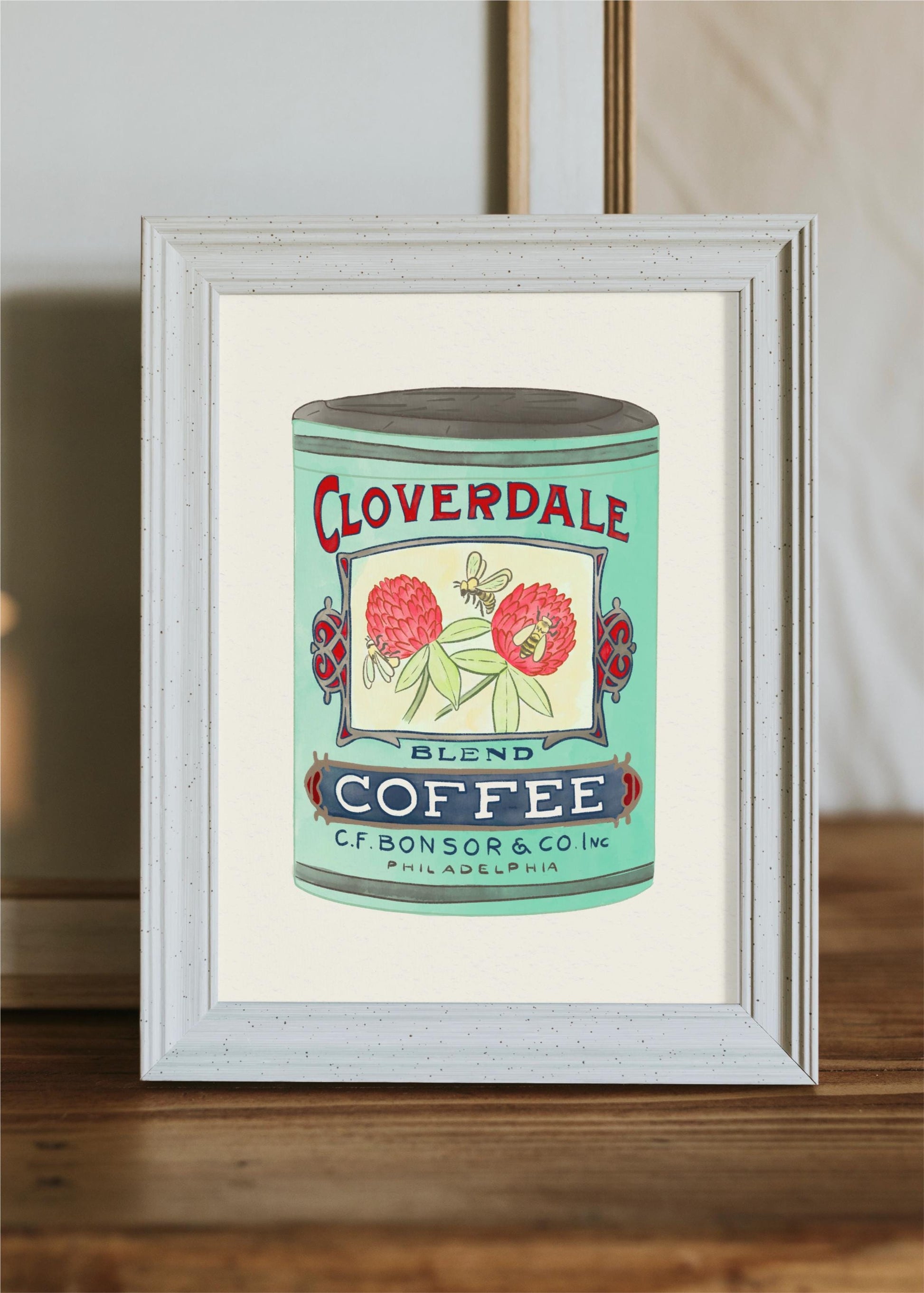 Vintage Coffee Tin Kitchen Poster/Art Print with clover and bee