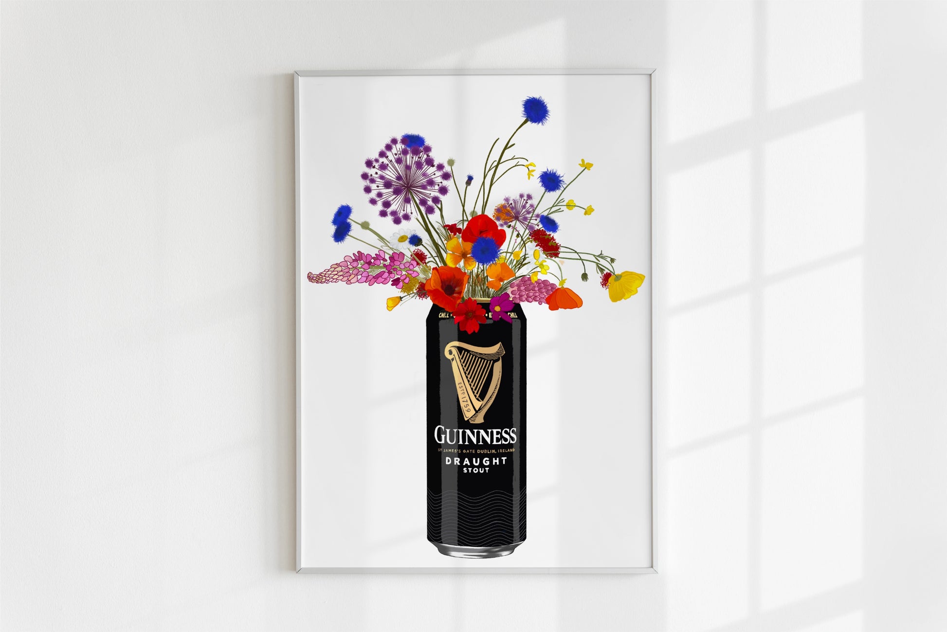 Guinness and colourful wildflowers unframed art print/poster