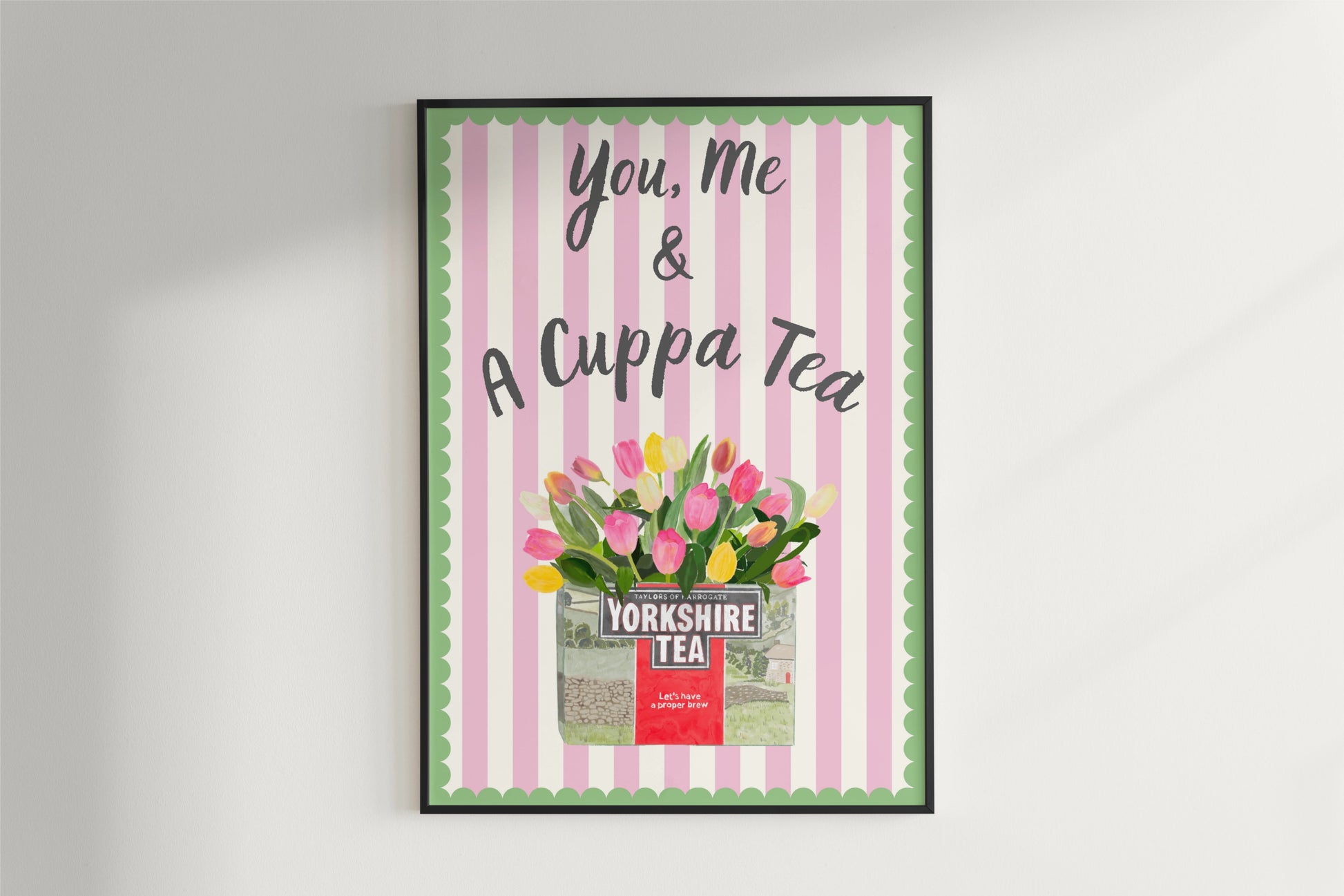 "You, Me & a Cuppa Tea" My illustration of the best brew, Yorkshire tea with a side of tulips, has been printed on premium, heavy weight, matte paper using top quality inks to provide a vibrant and beautiful piece of art for any room of your home.